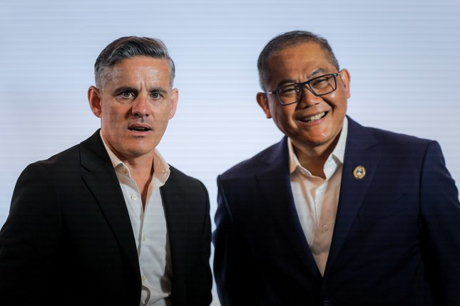 Pelatih Timnas Indonesia, John Herdman dan Ketua Badan Tim Nasional (BTN) Sumardji. Bola Panas